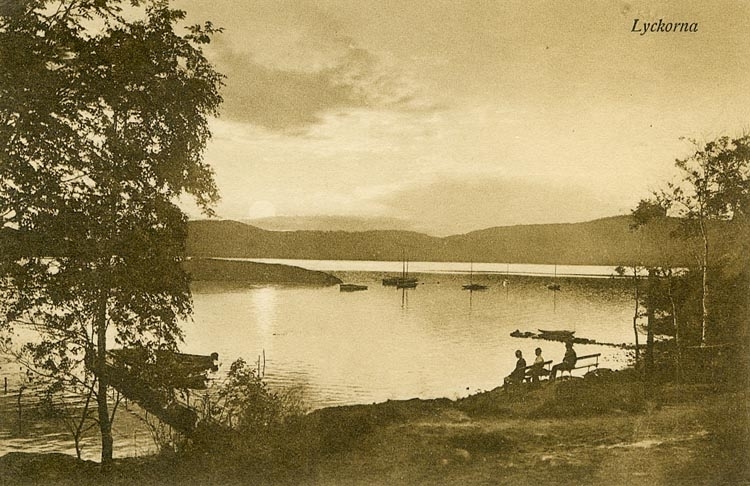 Enligt Bengt Lundins noteringar: "Lyckorna. Solnedgång över Ljungholmen".