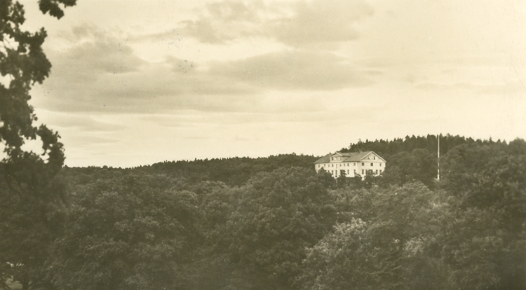 Enligt Bengt Lundins noteringar: "Flygfoto. Västkustens Ungdomsskola till höger, Ljungskile".