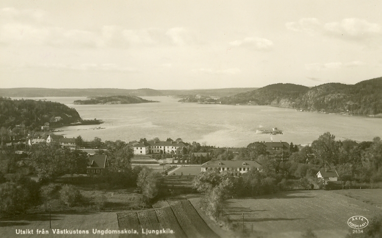 Enligt Bengt Lundins noteringar: "Utsikt från Västkustens Ungdomsskolan. Ljungskile".