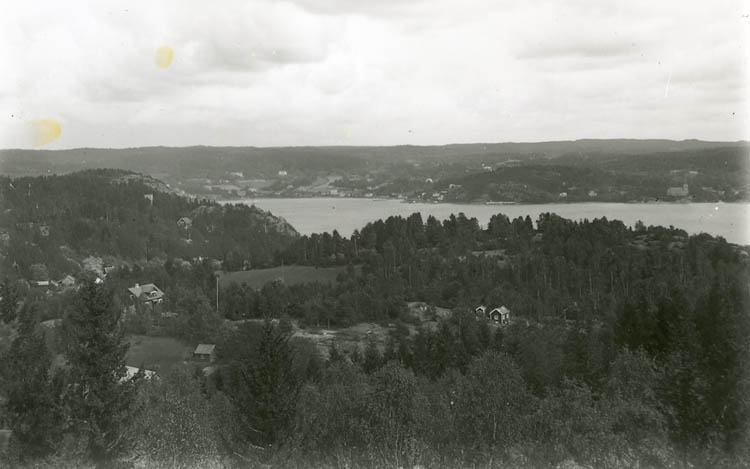 Enligt Bengt Lundins noteringar: "Utsikt mot Ljungskile. Gårdar på Ulvesund".