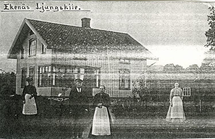 Enligt Bengt Lundins noteringar: "Olle och Nina Johansson framför huset. Byggt 1904. Ljungskile".