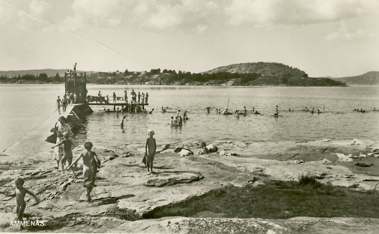 Enligt Bengt Lundins noteringar: "Ammenäs. Badande barn vid brygga".