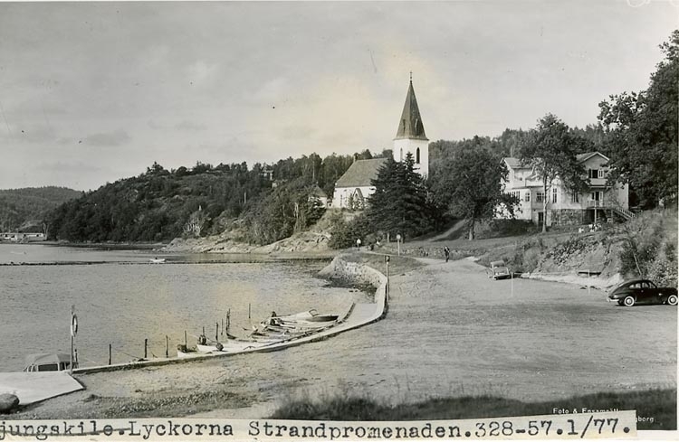 Enligt Bengt Lundins noteringar: "Lyckorna med Ljungs kyrka. Strandpromenaden".