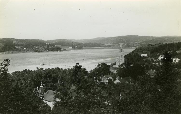 Enligt Bengt Lundins noteringar: "Vy från Lyckorna. Restaurang. Kyrka Valås".