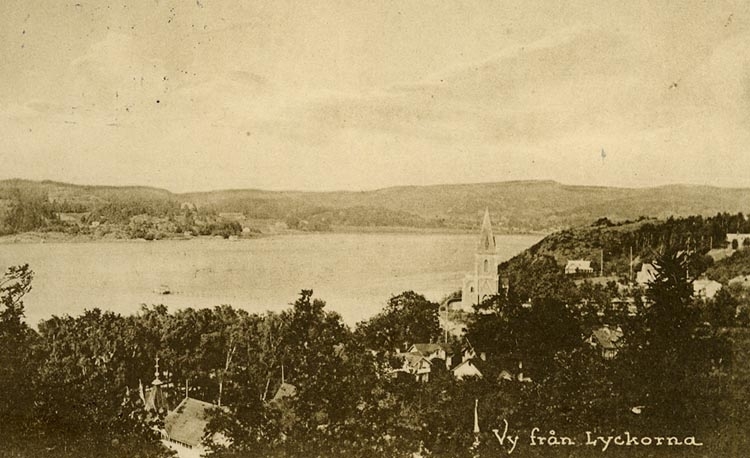 Enligt Bengt Lundins noteringar: "Vy från Lyckorna. Restaurang. Kyrka Valås".