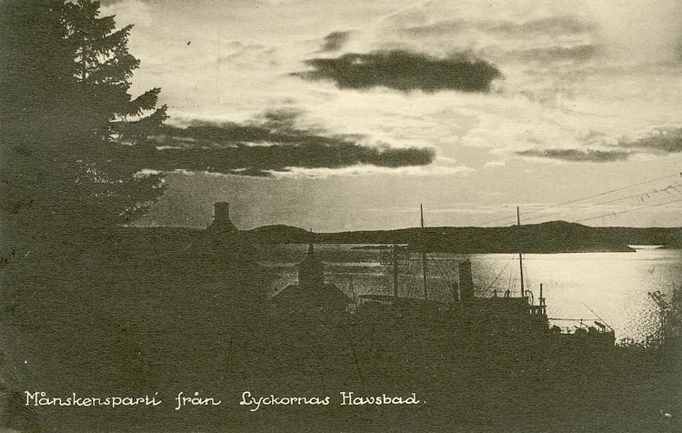 Enligt Bengt Lundins noteringar: "Månskensparti från Lyckorna. Havsbad. Siluett".