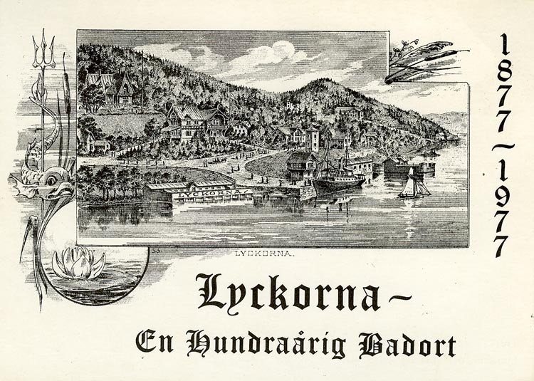 Enligt Bengt Lundins noteringar: "Lyckorna. Badort i Bohuslän, grundad 1877 av Robert Macfie. Efter teckning från 1890-talet. Tryckt till Lyckornas 100-årsjubileum 1977 ".