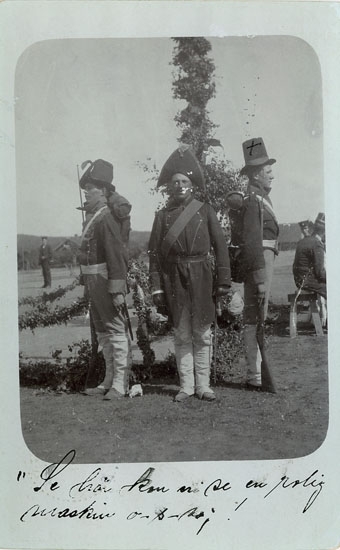 Enligt Bengt Lundins noteringar: "Midsommarstång med hedersvakt i 1810 års uniform".