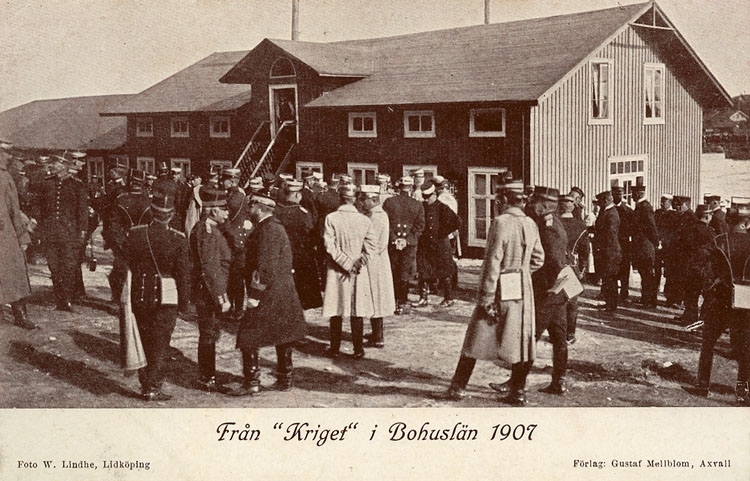 Enligt Bengt Lundins noteringar: "Kriget i Bohuslän 1907. Officerarna samlas för information".