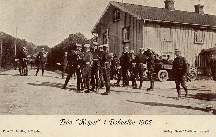 Enligt Bengt Lundins noteringar: "Från"Kriget" i Bohuslän 1907. Anfallsstyrkans stab efter information".