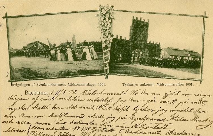 Enligt Bengt Lundins noteringar: "Tyskarnas ankomst. Midsommarafton 1901. Invigning af Svensksundsstenen, Midsommardagen 1901".