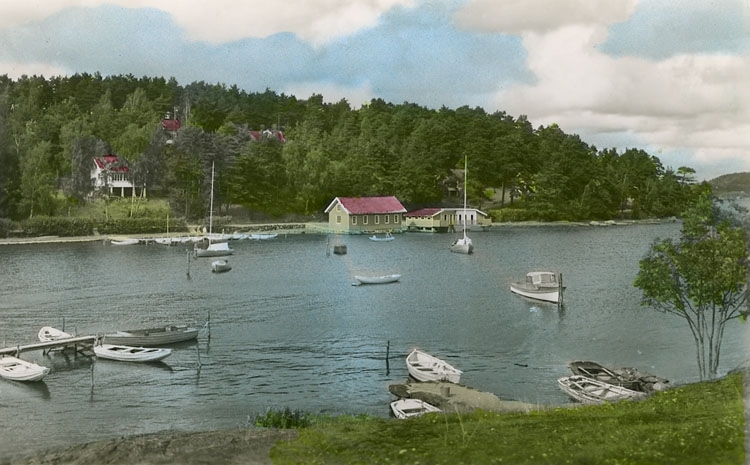 Titel: Enligt Bengt Lundins noteringar: "Stillingsön. Vy mot badhusen"