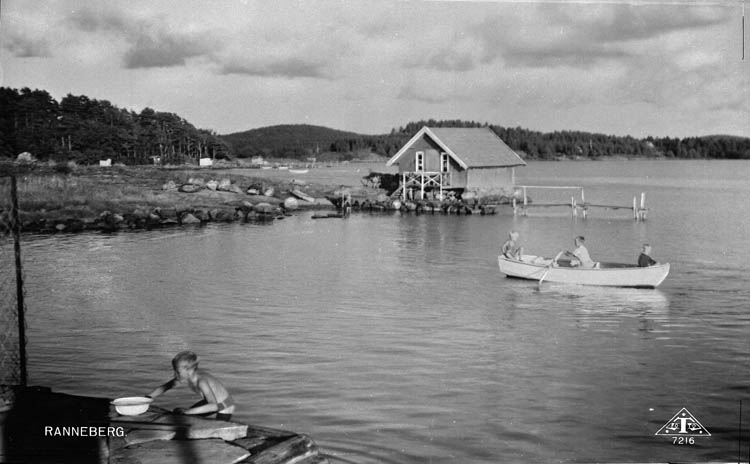 Enligt Bengt Lundins noteringar: "Raneberg. Pojkar vid båthus. Vykort TF 7216 BL 1540".