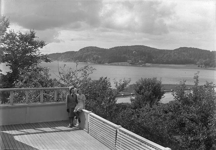 Enligt Bengt Lundins noteringar: "Hemgården. Balkong med två damer".