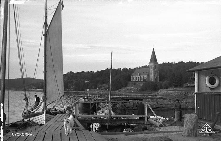 Enligt Bengt Lundins noteringar: "Lyckorna. / Ljungs kyrka. Hund på bryggan. Vykort TF 3153 Foto BL 340".