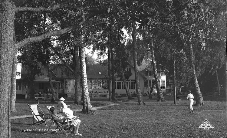 Enligt Bengt Lundins noteringar: "Lyckorna. Restaurangen. Damer i vilstolar. Vykort TF 3152 Foto BL 381".