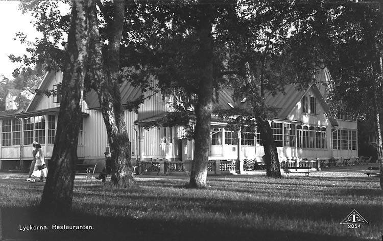 Enligt Bengt Lundins noteringar: "Lyckorna. Restauranten. Med sköterska. Vykort TF 2054 BL 384".