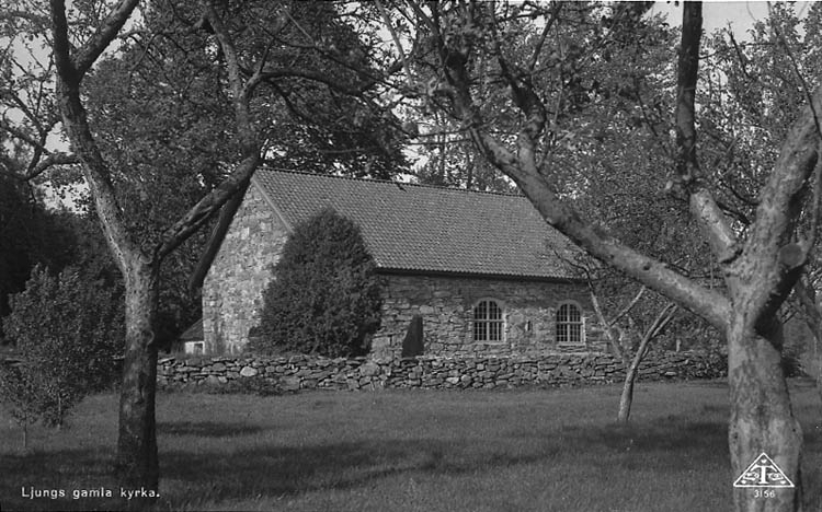 Enligt Bengt Lundins noteringar: "Lyckorna. Ljungs gamla kyrka. Vykort TF 3156 Foto BL 735 Jmf neg 189".