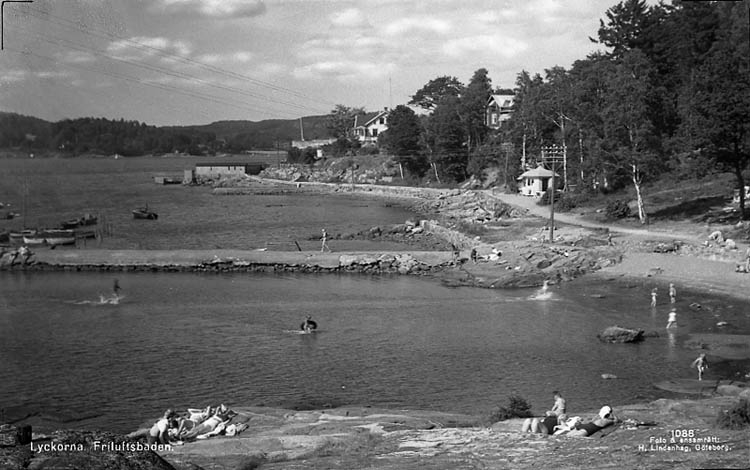 Enligt Bengt Lundins noteringar: "Lyckorna. Friluftsbaden. Vykort Li 1088 Foto BL 1726".