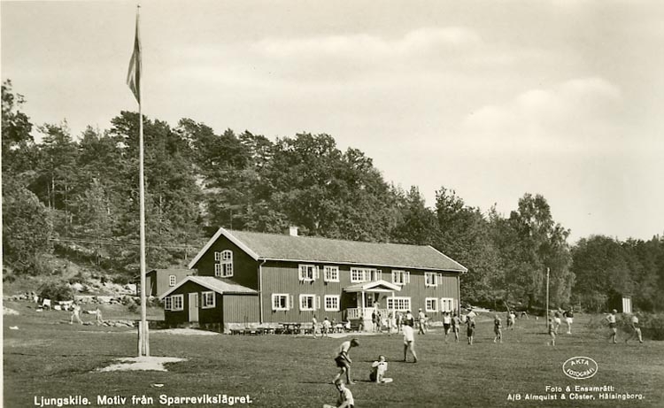 Enligt Bengt Lundins noteringar: "Ljungskile. Motiv från Sparrevikslägret. Huvudbyggnaden. Stämpel: Sparrevikslägret".