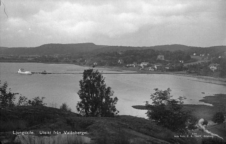 Enligt Bengt Lundins noteringar: "Ljungskile. Utsikt från Valåsberget. (Linnea & rök). Vykort TF 554 BL 694".