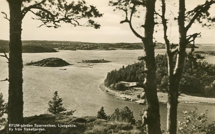 Enligt Bengt Lundins noteringar: "KFUM-gården. Sparreviken, Ljungskile. Vy från Hakefjorden".