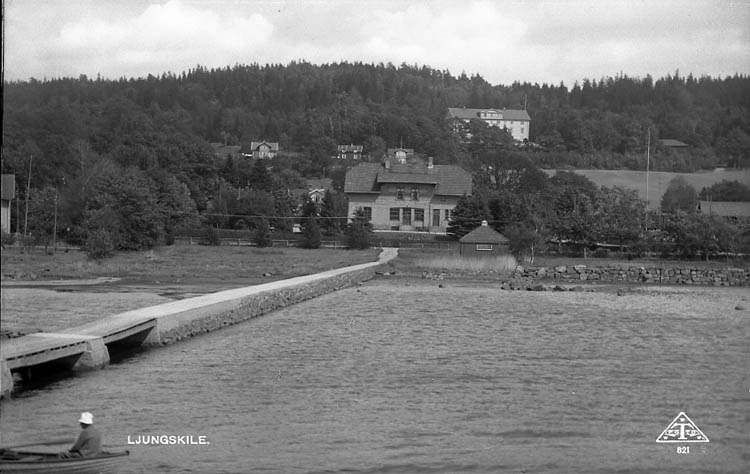 Enligt Bengt Lundins noteringar: "Ljungskile. Ecks brygga och stationshus. Vykort TF 821 BL 900".