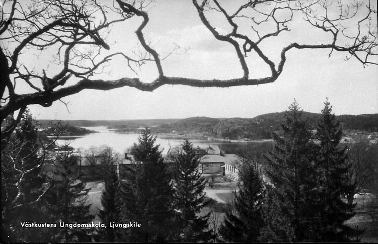 Enligt Bengt Lundins noteringar: "Ljungskile. Utsikt över Ljungskileskolan. Vykort KGH Foto BL 1056".