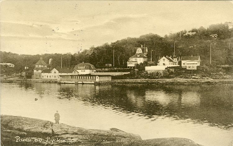 Enligt Bengt Lundins noteringar: "Parti av Lyckorna. Stora hotellet Valhalla. Havsvik och