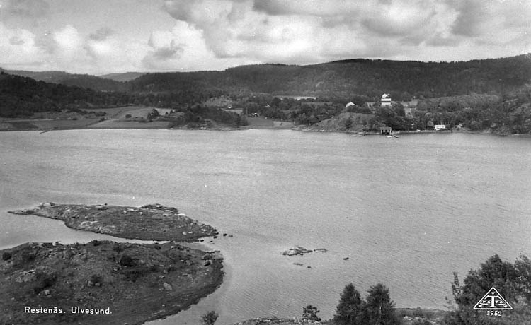 Enligt Bengt Lundins noteringar: "Restenäs. Utsikt från Strandön. Vykort TF 3952 Foto BL 1368" .