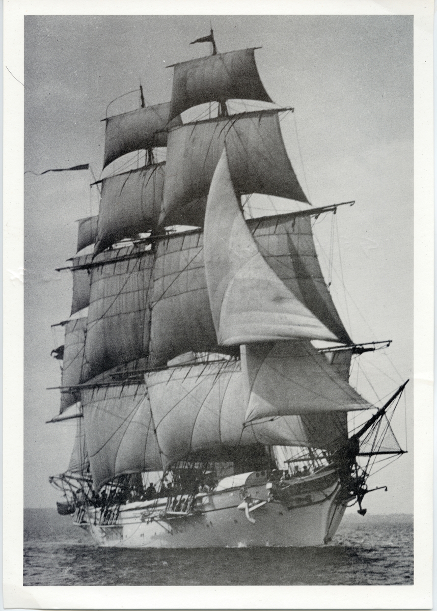 Skeppsgossekårens skolfartyg HMS NAJADEN för fulla segel omkring 1934.