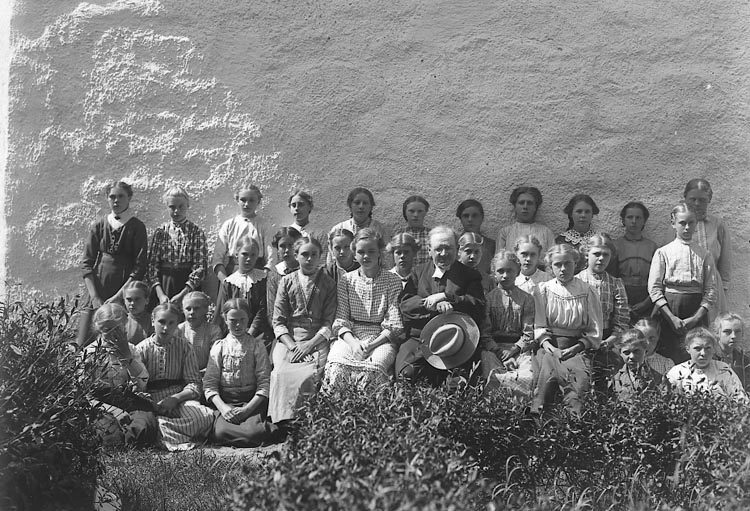Enligt fotografens notering: "Konfirmanderna Solberga 1913. Pastor Ringius".