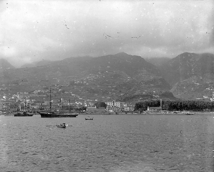 Enligt fotografens notering: "Madeira, högst uppe syns en tvåtornig byggnad".