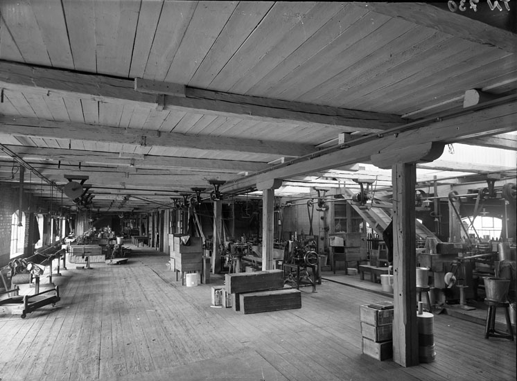 Enligt tidigare noteringar: "Interiör från Uddevalla Tändsticksfabrik. Packsalen."