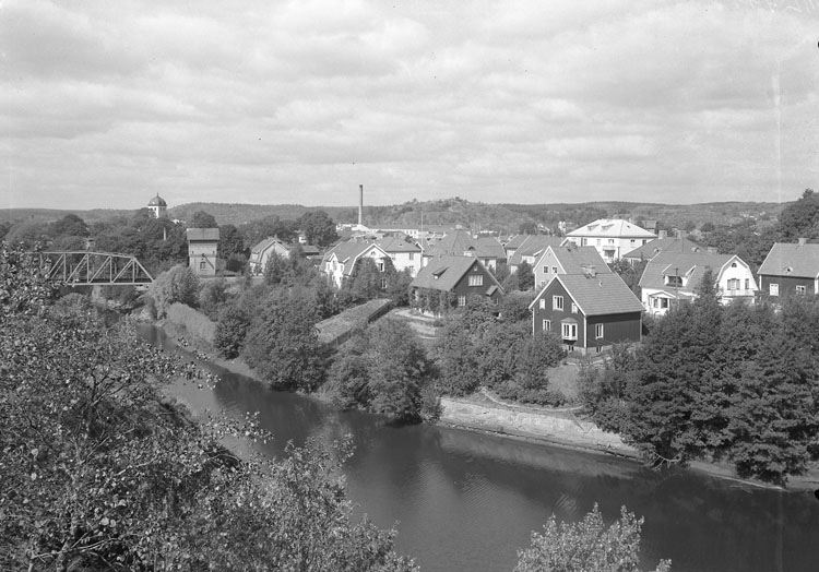 Uppgift enligt fotografen: "Uddevalla. Villor öster, jvg - bron över Bäveån."