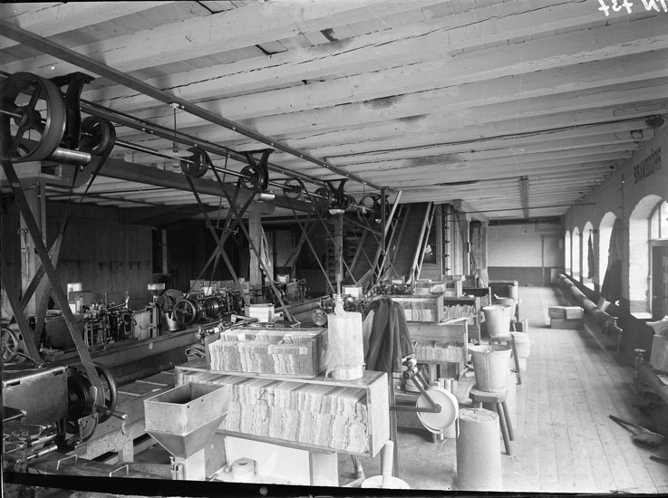 Enligt tidigare noteringar: "Interiör från Uddevalla Tändsticksfabrik. Innerasktillverkning."
