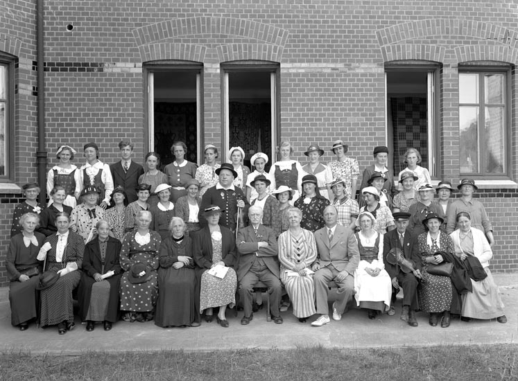 "Uddevalla. Grupp utomhus. Slöjdkurs. Fröken Kleberg." enligt uppgift från fotografen.
