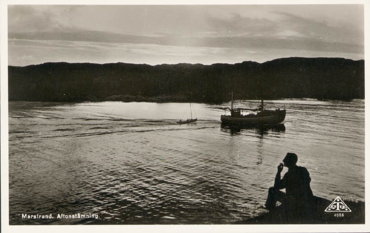 Tryckt text på kortet: "Marstrand. Aftonstämning."