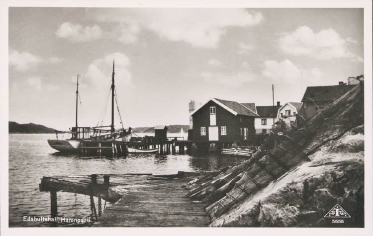 Tryckt text på kortet: "Edshultshall. Hamnparti."