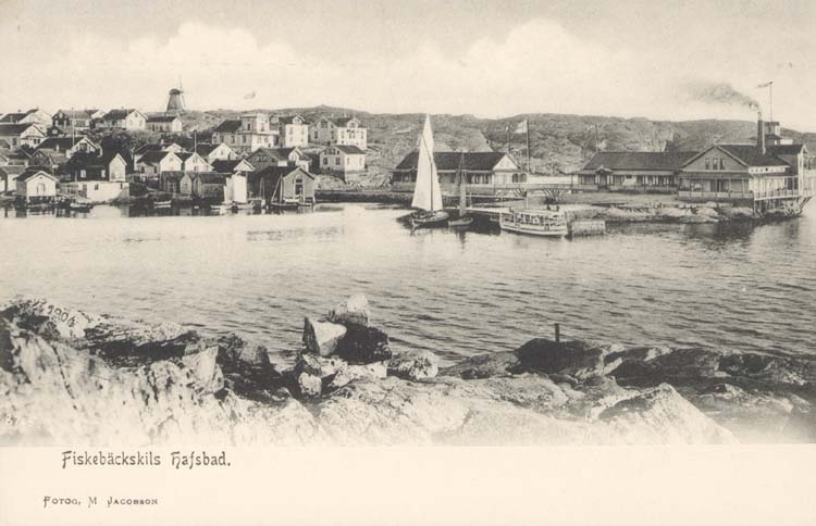 Tryckt text på kortet: "Fiskebäckskils Hafsbad."