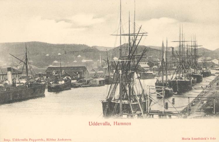 Tryckt text på kortet: "Uddevalla. Hamnen."