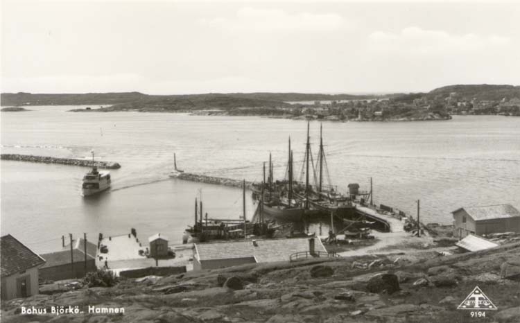 Tryckt text på kortet: "Bohus Björkö. Hamnen."