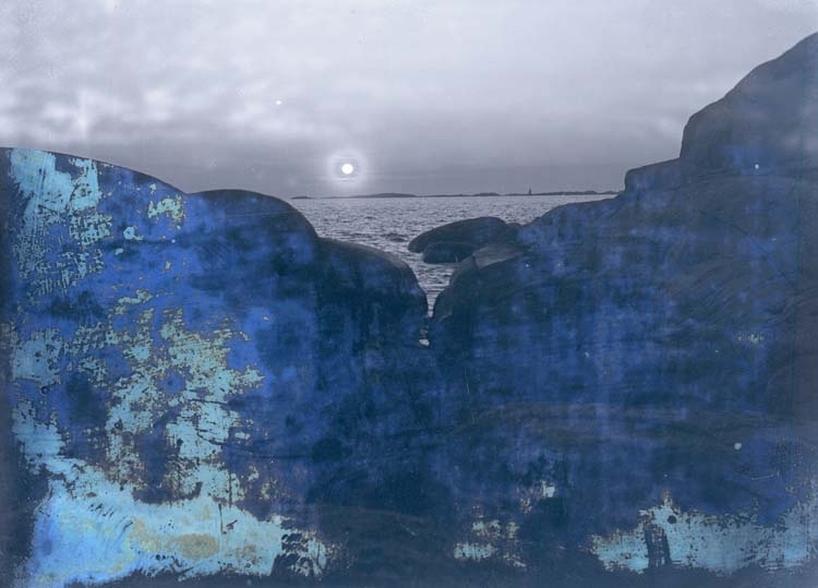 Enligt text som medföljde bilden: "Vid Stångehuvud." Solnedgång.