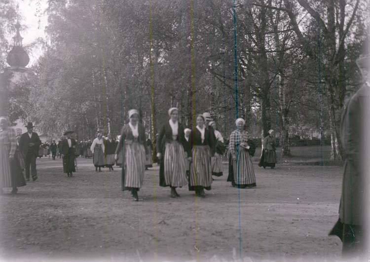 Enligt text som medföljde bilden: "Vid kyrkan Leksand sept. 1916".