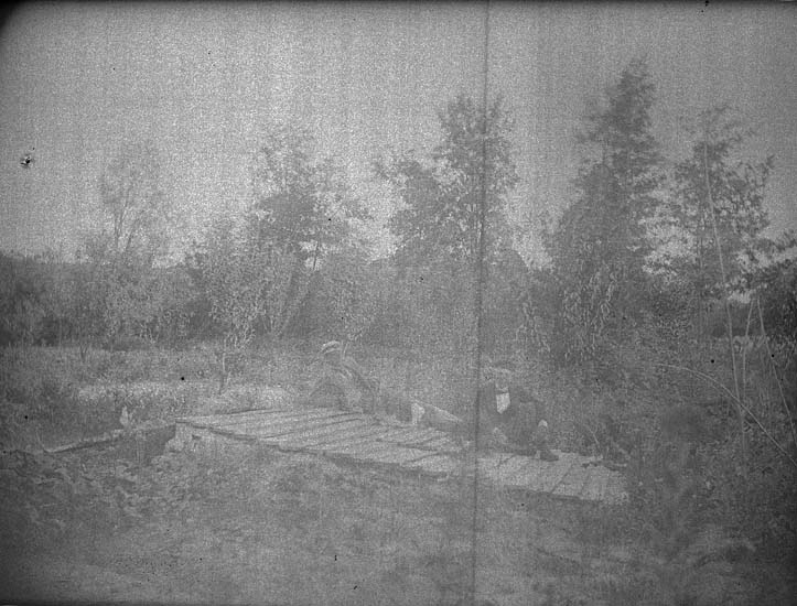 Enligt text som medföljde bilden: "Lunnevik. Valter och Hjalmar på brunnen 1897."