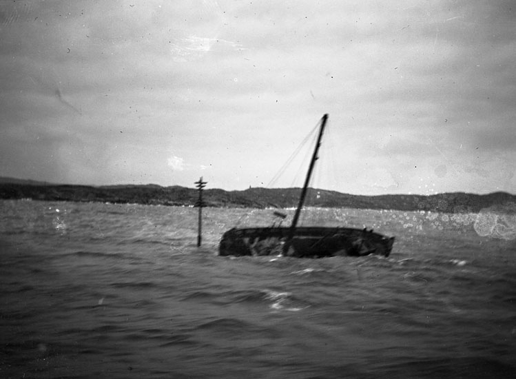 Enligt text som medföljde bilden: "Motorbåt. Strandning."