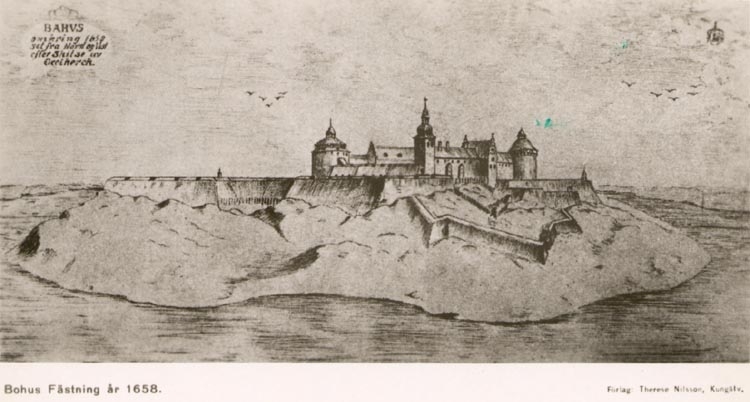 Tryckt text på kortet: "Bohus Fästning år 1658".