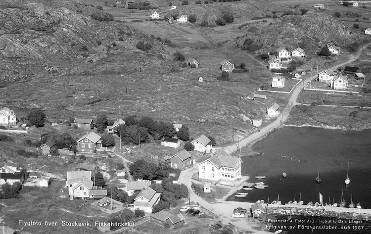 Enligt text på fotot: "Flygfoto över Stockevik, Fiskebäckskil".