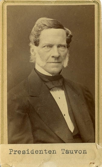 Text på kortets baksida: "Olof Axel Tauvon. Jur. dr. president i K. stats- kontoret".