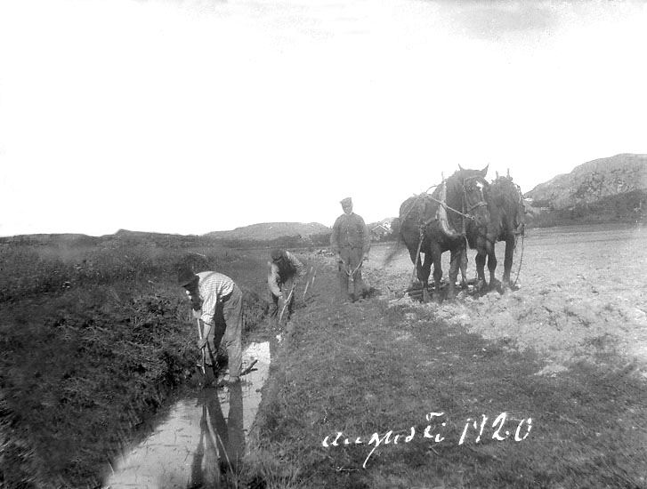 "Dikesgrävning. Johan och Joel Krok. Johannes A. vid hästarna,